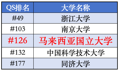 2026年QS世界大学排名中,马来西亚国立大学位居世界第126名、亚洲排名第26名、马来西亚国内本地大学排名第2名,它也被QS评估为“5星大学”。