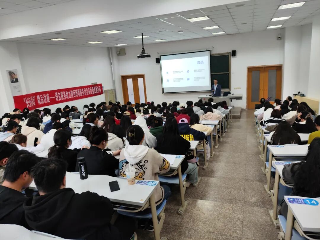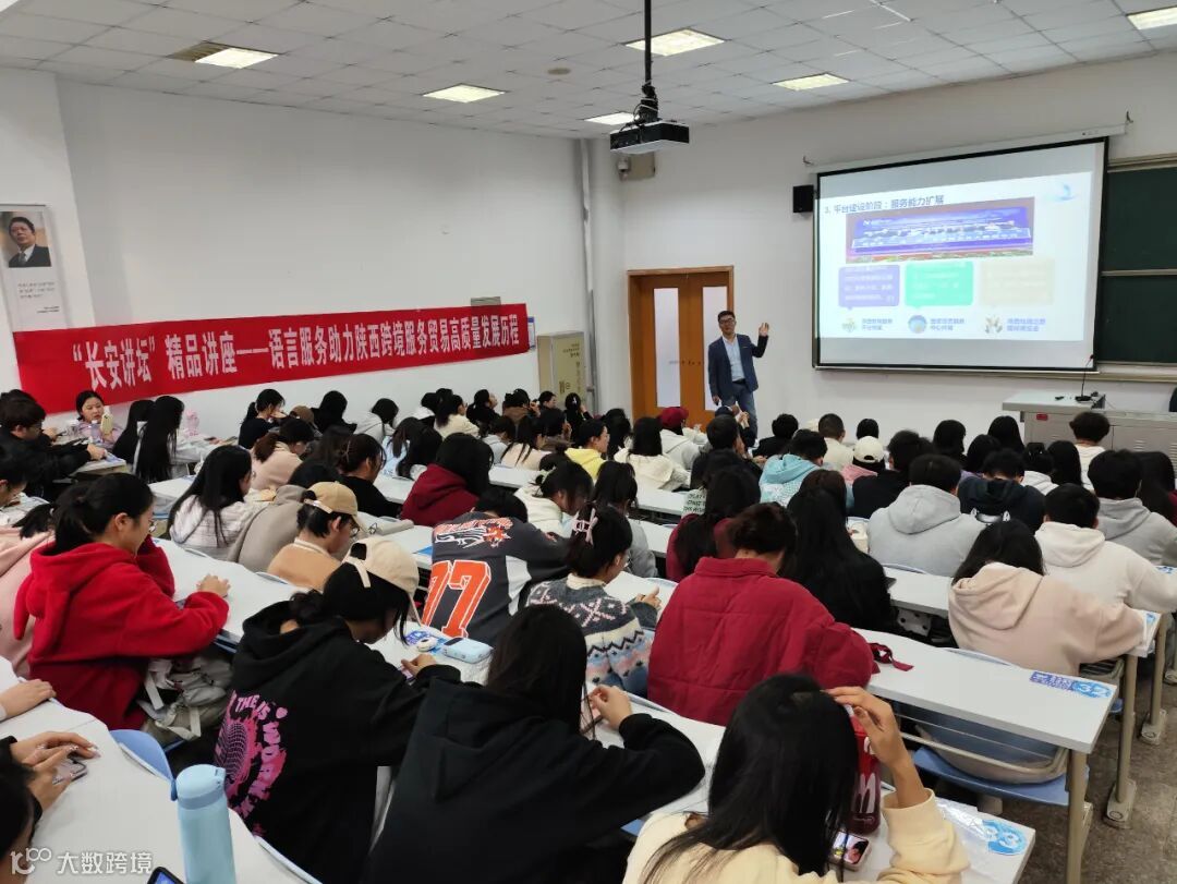 为充分发挥社会组织科研服务优势,传播语言服务与跨境服务贸易知识,宣传陕西高质量发展成就,提振外语类师生从事语言服务事业的信心,2024年10月29日下午,陕西颖创跨境贸易研究院研究员张国建副教授在西安翻译学院英文学院开展了主题为“语言服务助力陕西跨境服务贸易高质量发展历程”的科普讲座,英语专业160余名师生参加。此次活动是陕西颖创跨境贸易研究院承办的2024年度陕西省社科联“长安讲坛”系列精品讲座之一。