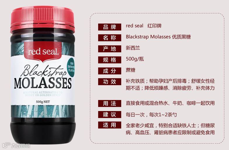推荐一款姨妈痛克星:新西兰red seal红印黑糖!相信已经有不少MM都知道它,效果好到不得了,有效活络气血,从此告别姨妈疼了,连药剂师都推荐呢~