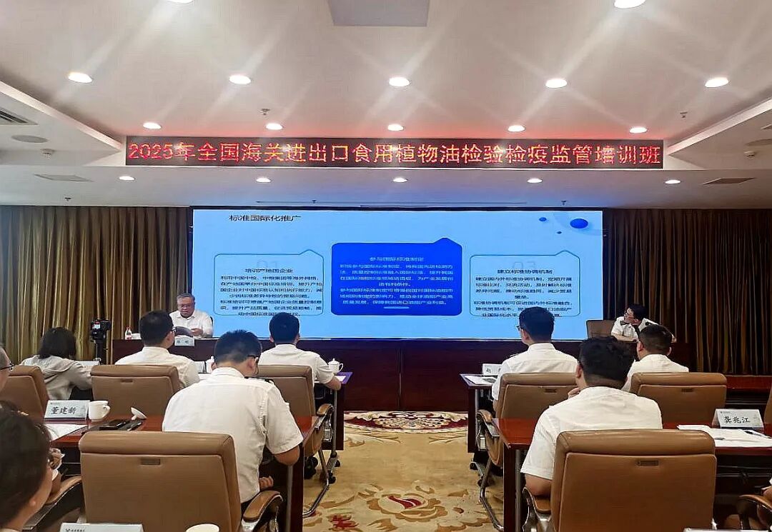 应海关总署进出口食品安全局的邀约,中国粮油学会发挥专业能力服务粮食安全和食品安全,遴选行业专家中粮集团对外合作部陈刚总监,于5月29日为来自全国35个直属海关的45名植物油监管核心业务骨干培训授课,剖析全球产业现状、潜藏风险点及行业最佳实践,促进监管要求与行业发展的良性互动。海关总署食安局白露副局长在培训班中强调:“食用植物油安全关乎千家万户。本次培训不仅是一次业务提升,更是一次使命的再强化。我们将以此次培训为新的起点,持续深化全链条监管实践,坚决筑牢进出口食品安全的国门屏障。”