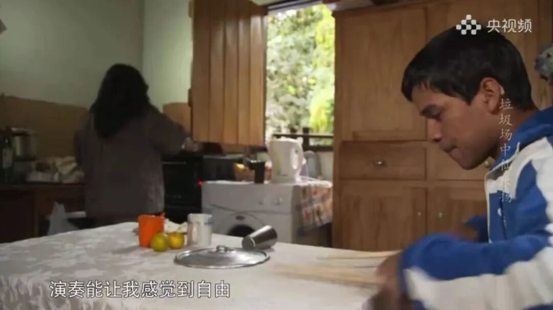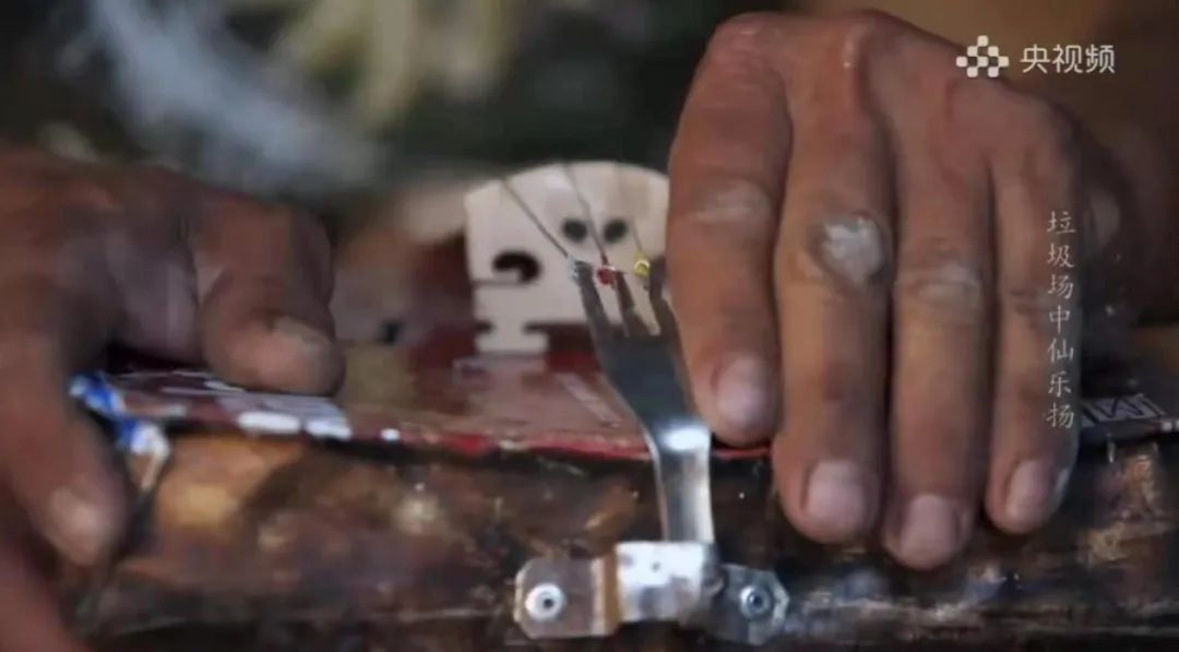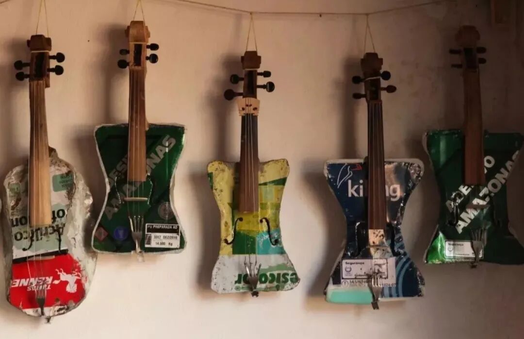 音乐的需求上来了,尼古拉斯开始用垃圾材料,制造更多种类的乐器,大提琴、鼓、吉他、萨克斯、笛子等等。