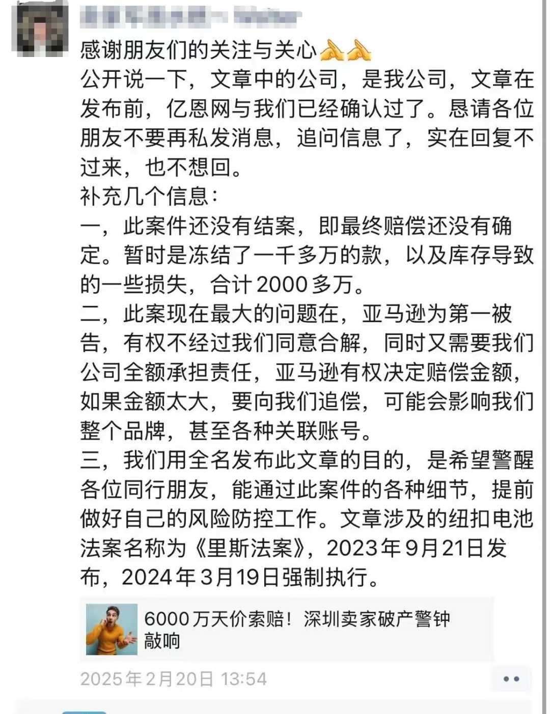 就在车扬陷入绝境之际,亚马逊提出了一个“解决方案”:以500万美元与对方达成和解。然而,根据亚马逊的开店协议,如果亚马逊支付了这500万美元,车扬将承担全部赔偿责任。这意味着,除了保险赔偿和账户冻结金额外,车扬还需额外支付250万美元。