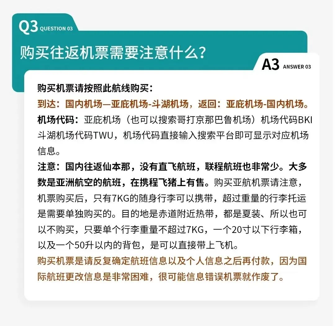 1. 机票:全程往返仙本那(斗湖机场)大交通费用;