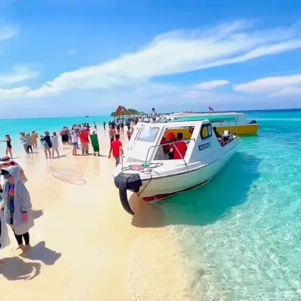09:40 抵达汀巴汀巴岛,这里有一条拖尾沙滩,是沙滩打卡拍照的理想场地,丰富的珊瑚礁群,探导海电和各种鱼类海角和各种角米