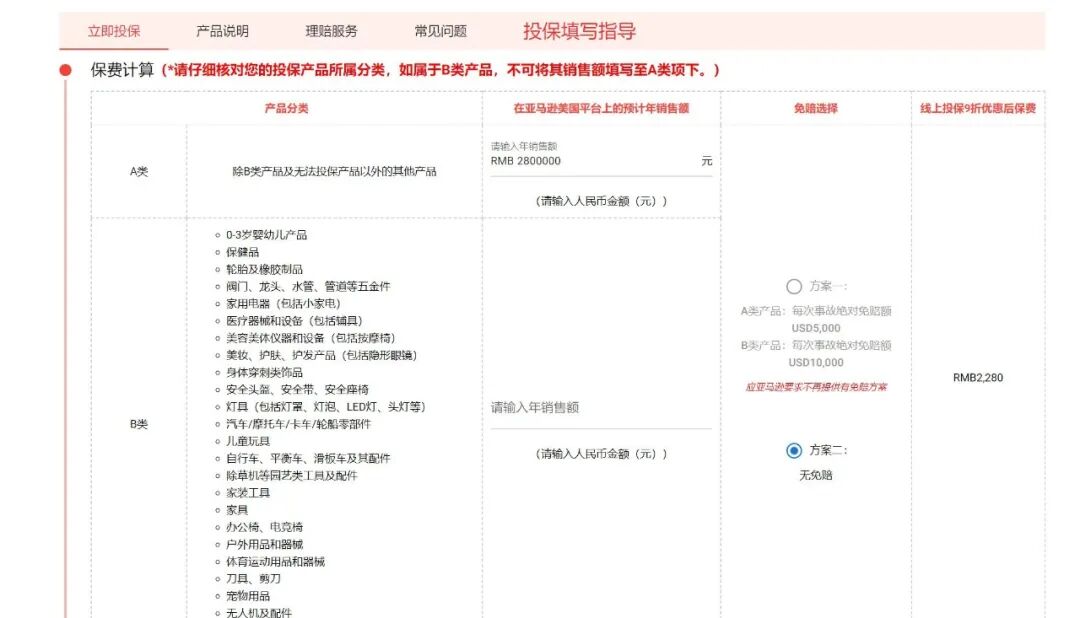 且针对前12个月的销售额超过 100 万美元的卖家,可以出“有免赔额”的保险方案!