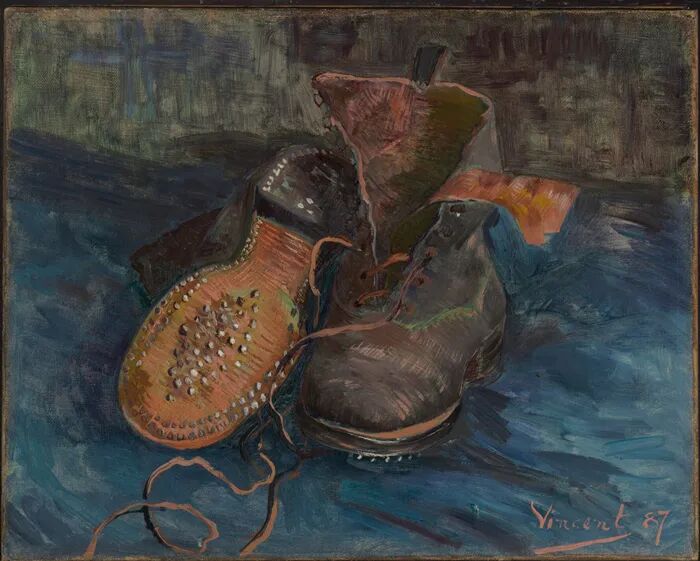 宇宙似乎通过其中平凡至极的物体——花朵、皮靴、椅子——无声地回应着梵高的凝视,而梵高,也透过它们,看见了自己。