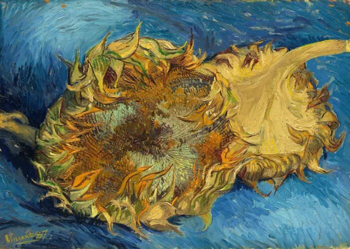 那燃烧殆尽火焰般的向日葵是否正是梵高一生的缩影?那双瘫软的皮靴,是否映射出梵高虔诚跋涉、从人间通往天堂的朝圣之旅?而那朴素的椅子四角,是否象征着梵高努力扎根于现实的生命?这些画面超越了物象的表层,不讨好,不妥协,却凝聚了梵高对生命、孤独与存在的理解。正因如此,成就了他在艺术史上至今无可替代的地位。借由这些作品,我们得以看见梵高如向日葵一般炙热燃烧的短暂一生、如软烂皮靴般疲惫破碎的经历、如葡萄园般丰沛浓烈的情绪、如树根枝丫般棱角分明的性格、以及如星空般旋转不息的理想...看见一个用尽全力活过的、真实的生命。