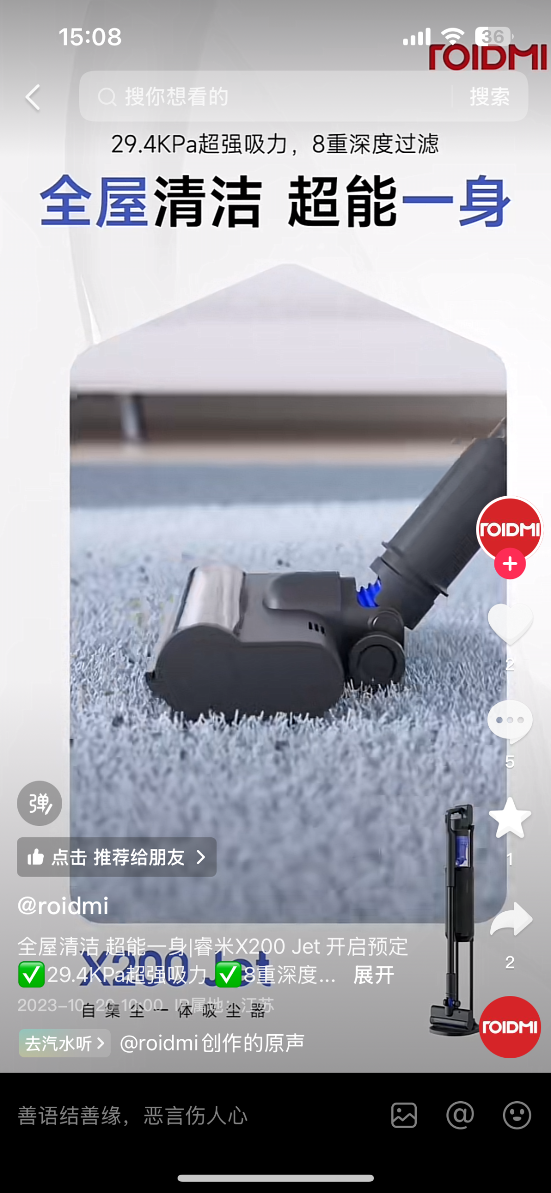 但好景不长,从2023年开始,ROIDMI睿米在社交媒体平台的更新频率就临近停摆,抖音最后一条动态更新还停留在2023年10月20日。