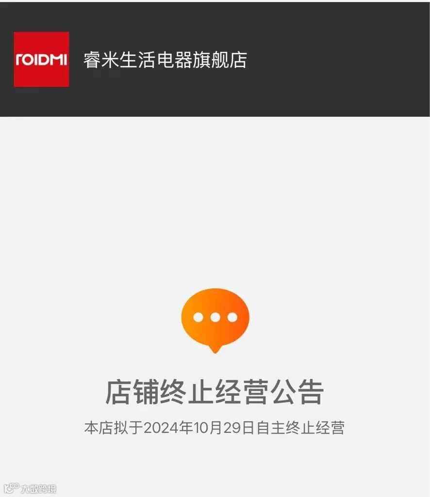 “由于市场环境的变化和公司经营战略的调整,我们不得不做出艰难的决定,终止【ROIDMI睿米】品牌运营”