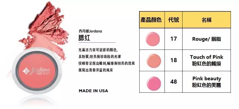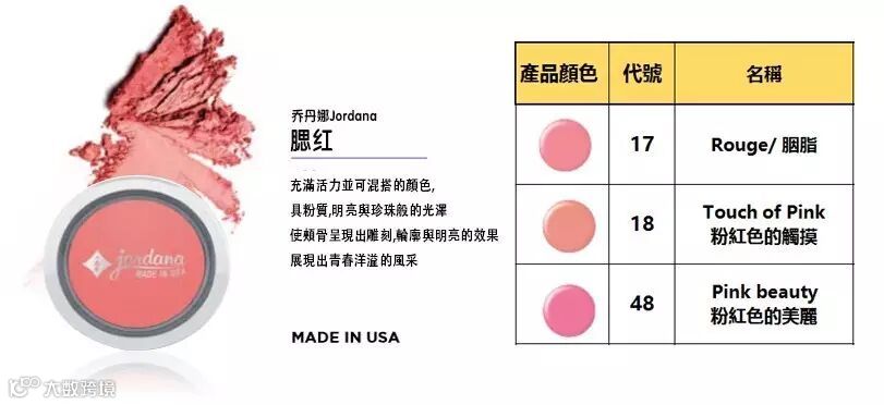 jordana家的腮红就不说了,在 B 站美妆区一堆只要标题里有「平价」的视频就会有它。颜色超多超美好,还分亚光和珠光。粉质细腻显色好,堪比大牌。