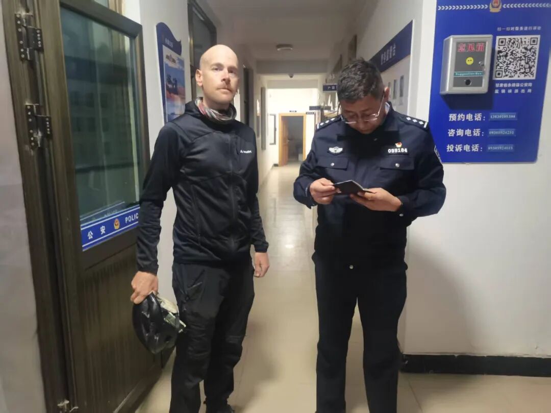 通过翻译软件,民警了解到,该男子是来自法国的骑行爱好者,正独自一人开启周游世界的骑行之旅,当晚计划从盐锅峡镇骑行前往永靖县城。不料天色渐暗,夜间气温骤降,随身携带的食物和饮用水已消耗殆尽,加之对当地路况不熟悉,骑行计划受阻,无奈之下只能向派出所求助,希望能得到前往县城的帮助。