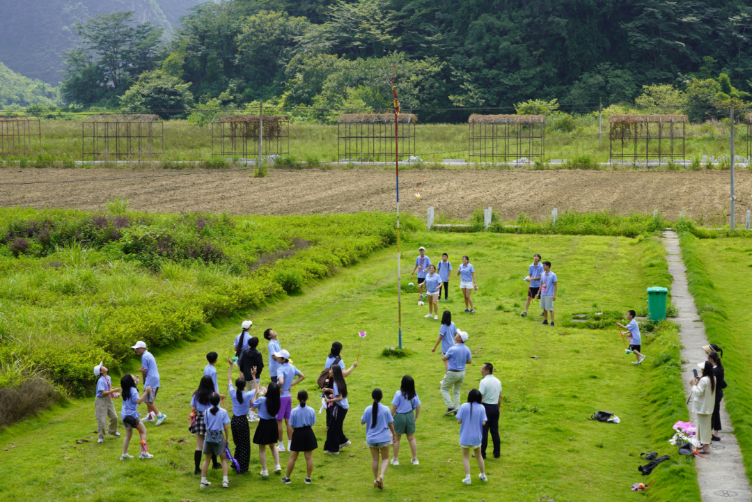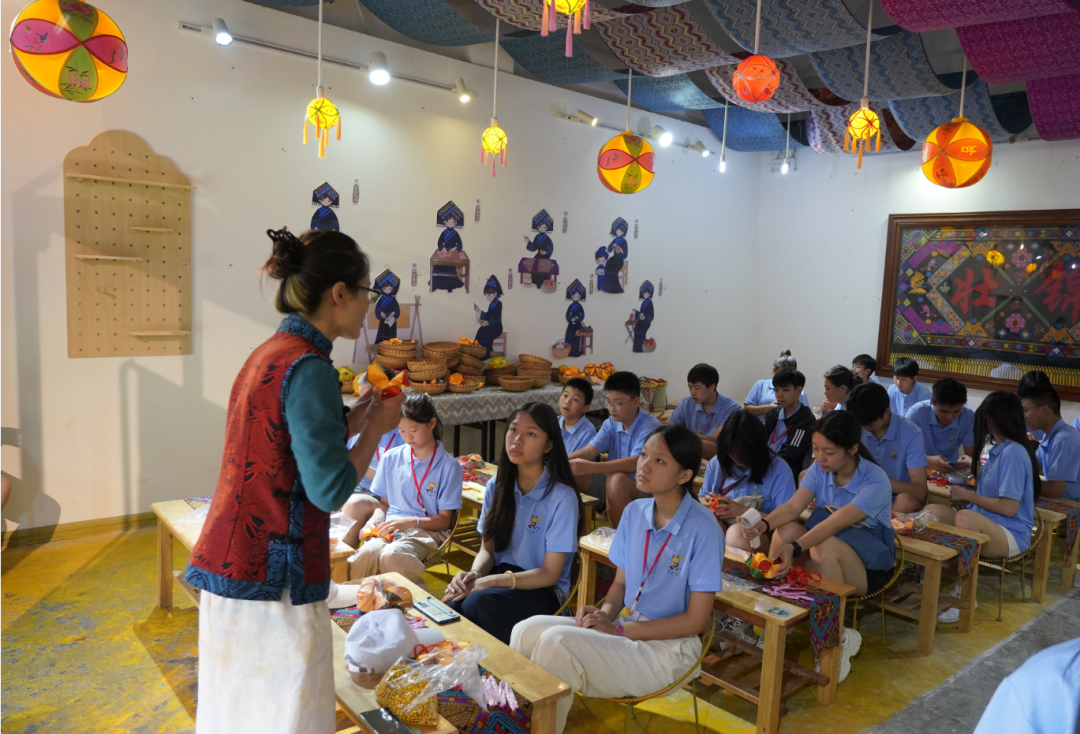 8月3日至8月6日,在百色市、靖西市和德保县开展相关研学活动期间,营员们走进百色市脱贫攻坚展示馆,见证祖国大地的沧桑巨变和发展奇迹,领略时代楷模风范,汲取奋进精神力量;在百色起义纪念馆,回顾那段波澜壮阔的革命历史,缅怀先烈的丰功佳绩,感悟红色精神;靖西市旧州古镇的古朴韵味、鹅泉的清澈秀丽,更让大家领略到了边关山水的秀丽风光;在德保县探秘奇幻吉星岩,体验百香果的采摘乐趣。同时营员们也沉浸式体验了非遗壮族文化,抛绣球、亲手制作绣球、香包、扎染,尝试活字印刷,感受指尖上的传承,体验到传统手工艺的魅力,领略古老技艺的智慧光芒。还与当地群众互动交流,在山歌表演唱、村T民族时装秀等活动中感受这片百色红土地的丰饶与热情,而壮乡人民对传统的坚守,更让这场寻根之旅有了穿透心灵的力量。