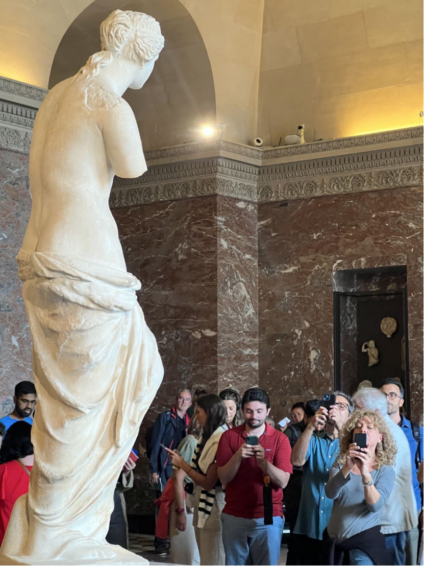午后,穿梭在卢浮宫博物馆,阳光斜洒在大理石雕像上,勾勒出千年如一的光影轮廓。孩子们围坐一圈聆听教师讲解,银发的夫妇在油画前驻足徘徊,艺术生咬着铅笔专注写生,蒙娜丽莎的笑容接近永恒,玛丽安的旗帜依旧鲜艳,莫奈的池塘波纹微动,亚述石雕守卫着王朝的残影。
