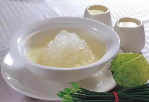 将炖好的燕窝盛入器皿中。我们可以看到炖好的燕窝细腻丝滑,晶莹透亮,让人垂涎三尺 。