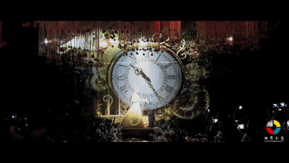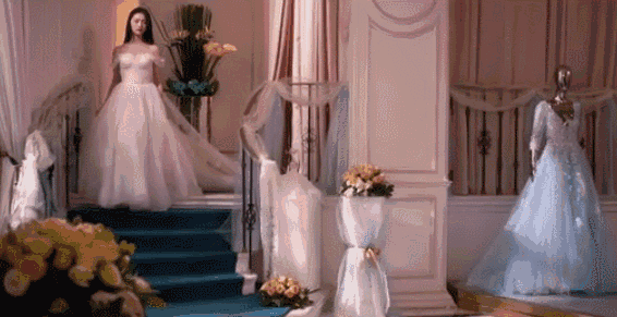 新娘的身后不断绽放出五彩缤纷的鲜花,