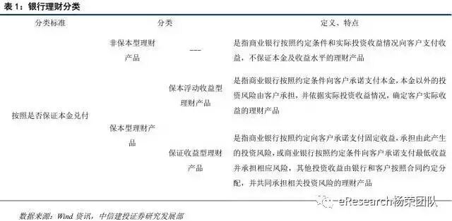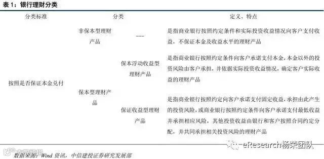 商业理财已经发展了十多个年头,发展极为快速,近五年年复合增长率超过40%。截止今年六月底,银行理财余额已经达到26.28万亿元。按照最新征求意见稿,商业银行理财产品有多种分类,分别按照是否保证本金兑付、是否估值和存续期是否开放等标准。这里我们重点考察是否保证本金兑换的分类标准。按照知否保证本金兑换,商业银行理财产品可以分为非保本型理财产品以及保本型理财产品,保本型理财产品又可以细分为保本浮动收益型理财产品,保证收益型理财产品两类。其中保本型理财产品属于表内理财,一般作为结构性存款,非保本型理财算作表外理财,也就成为了银行将信贷资产出表的一大利器。