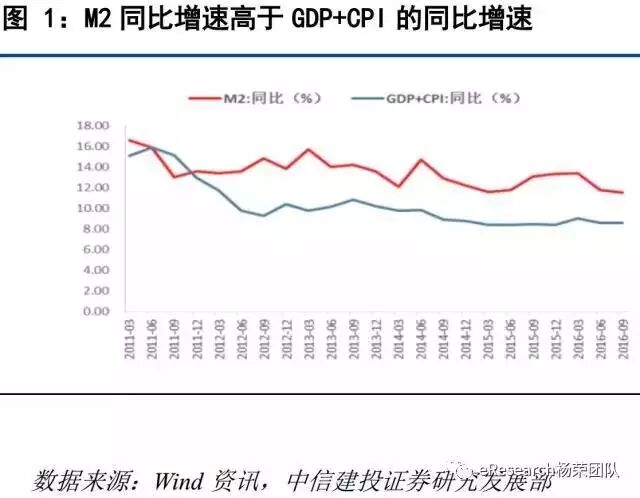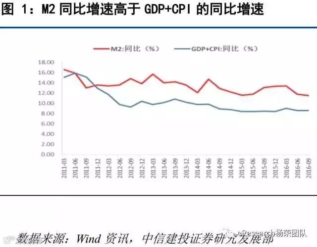 从今年前三季度GDP初步核算结果来看,金融业的增加值要占GDP总量的8.8%,而美国不足7%,日本只有5%。M2同比增速远高于GDP+CPI同比增速,今年第三季度数据显示,M2增速为11.5%,而GDP+CPI只有8.6%,相差2.9%,这样看来我国确实存在资金空转,脱实向虚的情况。
