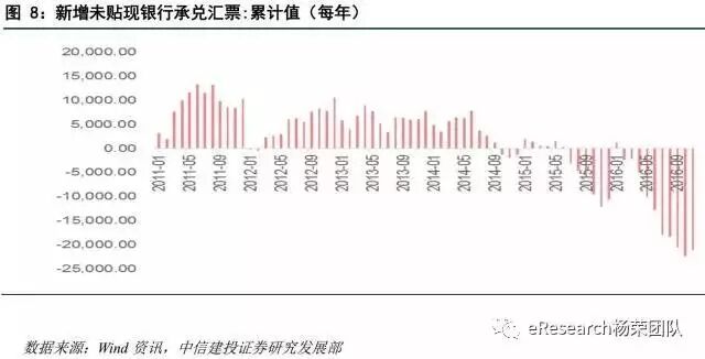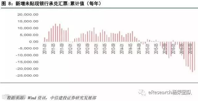 商业银行的票据业务品种,一般包括承兑、贴现、转贴现买断/卖断、卖出回购/买入返售业务。从图8也可以看出,银行票据业务自2013年后开始有所下滑,今年下滑尤为严重。
