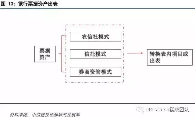 因为银行承兑汇票一旦贴现,就被纳入信贷规模,重新归入银行表内。所以票据空转无论如何一定会在一定程度上消耗银行的信贷额度和占用银行资本。所以,银行也想方设法将票据资产在表内进行挪移或者转为表外。一下大致列举三种模式。
