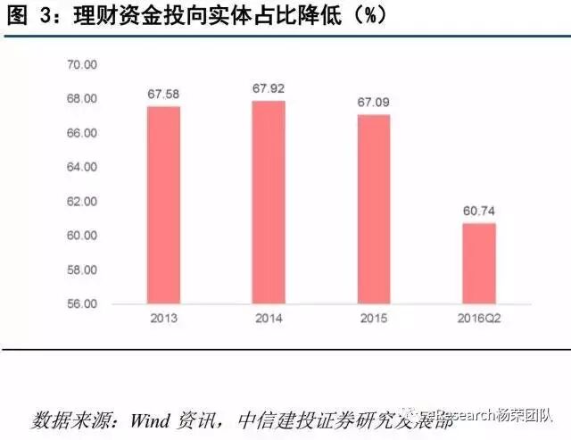 (3)理财资金投向实体规模增加,但占比降低