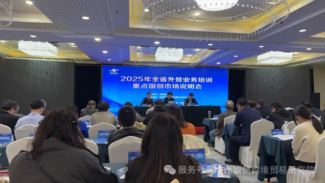 近日,由陕西省商务厅主办、陕西省广交会协会承办的《2025年全省外贸业务培训—重点国别市场说明会》在西安市唐城宾馆圆满举行。此次会议会期一天半,于3月27 - 28日举行,旨在帮助省级相关部门、各地商务主管单位及企业应对复杂的国际贸易环境,提升外贸业务能力。陕西颖创跨境贸易研究院院长王淙教授应省商务厅贸易二处之邀出席了此次会议。