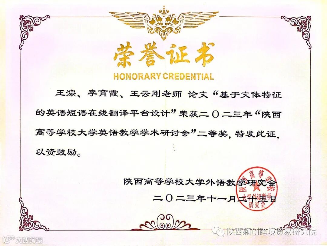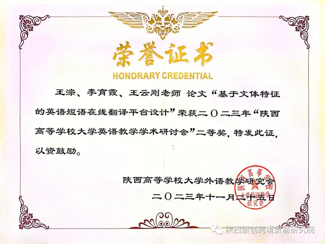 最终我院提交的论文“Design of English Phrase Online Translation Platform Based on Stylistic Features”(基于文体特征的英语短语在线翻译平台设计)荣获二等奖。据悉,该文章最初发表在2021年的国际学术会议,2022年已经EI-CA检索。作者团队根据论文还开发了同名软件著作,2023年初获得国家版权局授权。