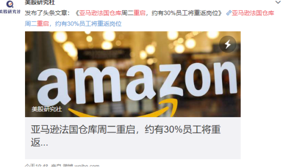 “亚马逊位于法国的六个仓库今日重启运营,大约30%的员工将重回工作岗位”