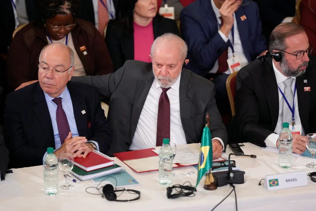 ▲12月6日,巴西总统卢拉(前排中)在乌拉圭首都蒙得维的亚出席南共市首脑会议。(新华社发)