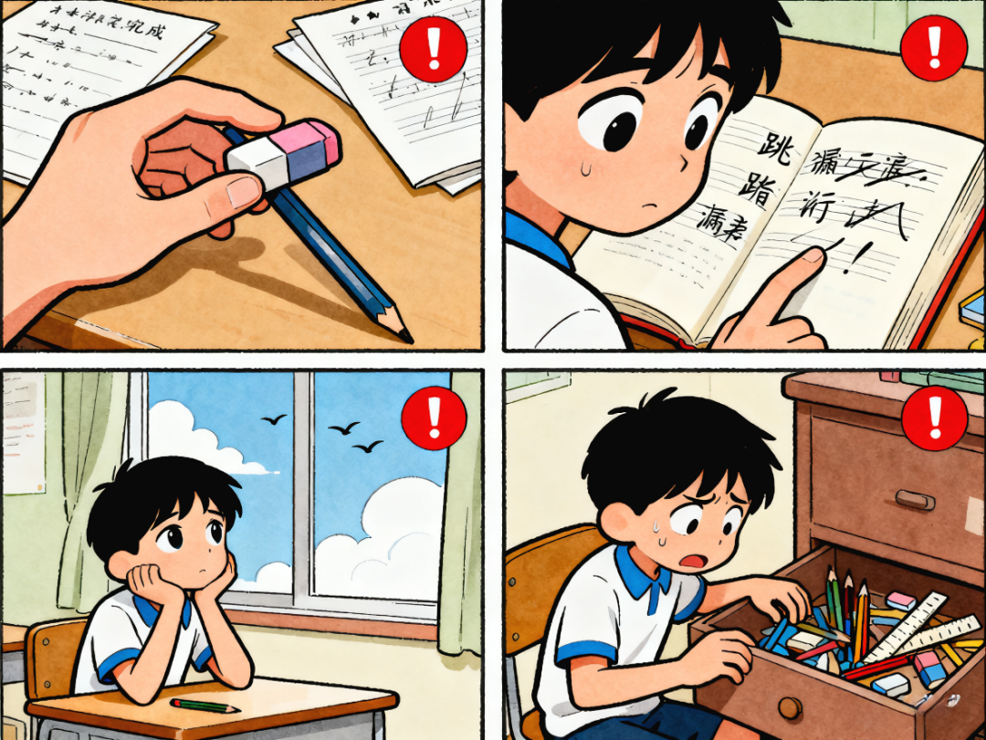 写作业时小动作不断:转笔、玩橡皮、咬指甲