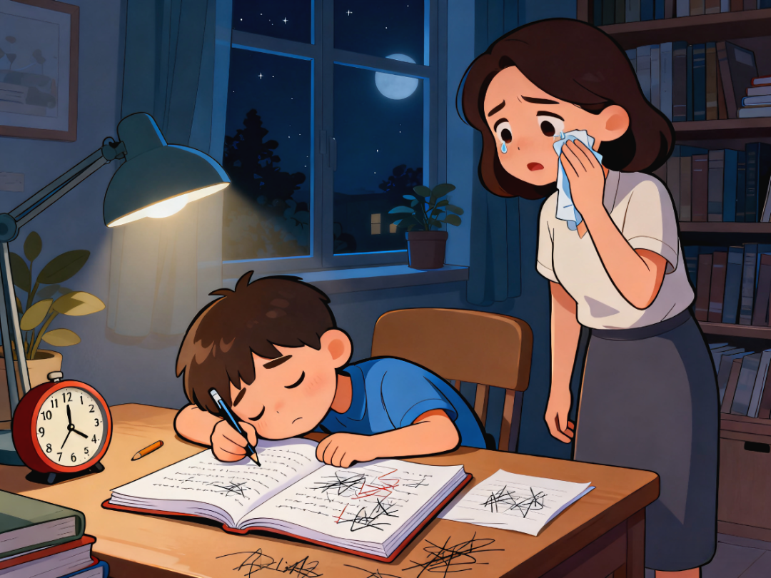 晚上八点,训练师李老师的手机亮起,屏幕上是一段来自四年级学生小宇妈妈的视频:画面里,小宇在书桌前坐立不安,一会儿玩橡皮,一会儿咬笔头,十分钟内去了三趟厕所。作业本上,数学题只写了半个答案。