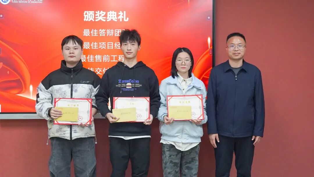 评审团从产业应用与学术规范双重视角进行评价,既考察方案的落地可行性与商业价值,又审核技术逻辑的严谨性与知识应用的准确性,确保考核的专业性与公正性。答辩尾声的颁奖环节亮点纷呈,“最佳答辩团队”“最佳项目”“最佳售前工程师”“最佳交付工程师” 等荣誉逐一揭晓,为学生们的辛勤付出给予充分肯定。