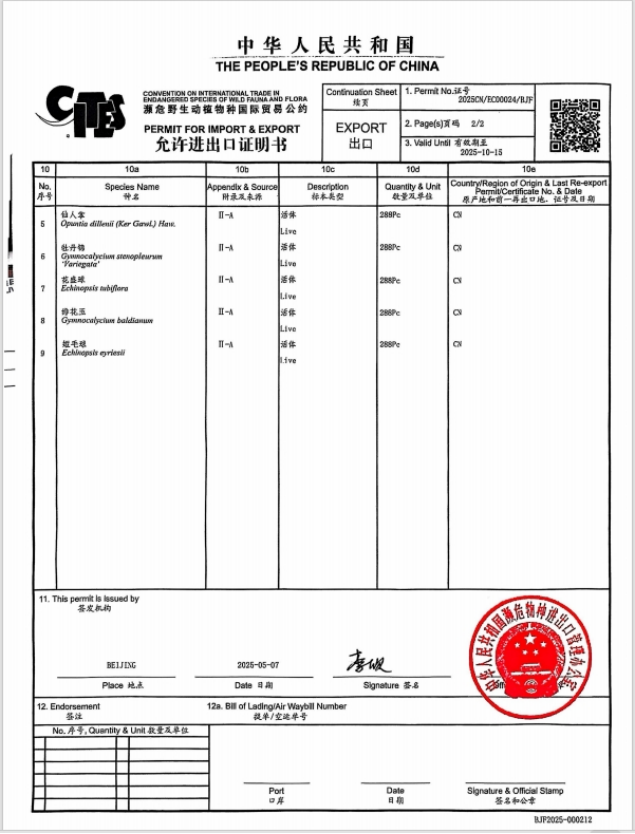 为确保此次出口业务顺利开展,北京爱洛夫特在北京市林业和草原局的悉心指导和帮助下,高效完成了《濒危野生动植物种国际贸易公约》(CITES)证书的申办工作。同时,公司专业团队密切跟踪俄罗斯植物检疫标准的最新动态,严格把控运输全流程。在中国国际航空公司的专业运输保障下,这批珍稀植物安全抵达目的地。