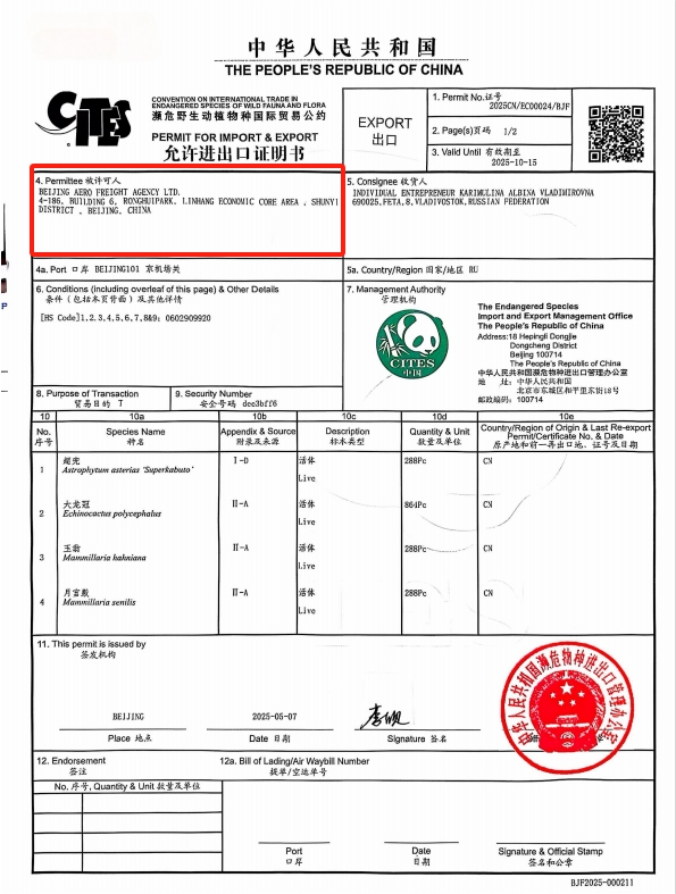 2025年5月29日,北京爱洛夫特国际物流有限公司成功将3000余株濒危仙人掌通过空运方式出口至俄罗斯,成为北京市首家完成濒危仙人掌出口运输的企业。这一突破性进展不仅填补了北京地区在该领域的空白,也为我国特色植物国际贸易开辟了新通道。