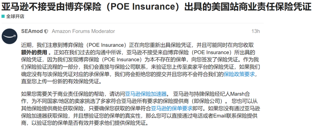 案例中的POE是一家保险经纪公司,不能作为保险承保人,且不具有出具保险单和保函的资质。因此亚马逊是不会通过该类不合规保函的凭证。
