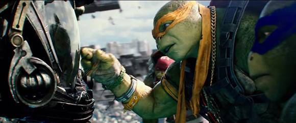 《忍者神龟2》在CG质量上有所提升,被赋予了更多形象设计上的色彩。3D特效爆发性强,BGM也是紧随镜头让人热血漫漫。只要那“口香糖出现”,我就觉得他好像就要用那湿漉漉的东西,碰到我。剧中的四神龟拥有“忍者”般的武术技艺,当背着笨重龟壳的他们灵活的穿梭于都市摩天大楼中,当只有三只手指的他们神奇的挥舞武器,当四人团结一心,齐喊口号快速的配合一体……这部电影不仅让四个神龟破影而出、俨然屹立,还让情怀破影而出。