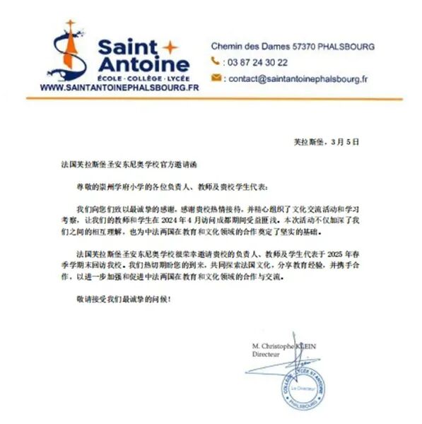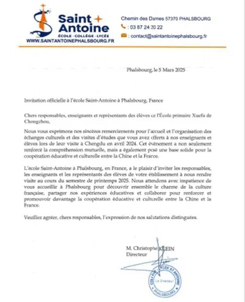 据悉,学校自2021年起便开设了法语课堂,并持续开展“法国文化进校园”系列活动,通过法语课程学习、法国文化了解、法语歌曲学习、中法线上交流,系统培养学生的跨文化素养。去年4月,法国友好学校师生代表团到访该校进行交流,双方围绕课堂教学、艺术实践及语言学习展开深度互动,为此次合作奠定了深厚基础。