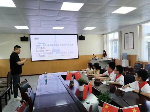 本次培训延续“行走的课堂”理念,何老师为学生们系统讲解了法国的历史脉络、风土人情及教育特色,并重点介绍了法国合作学校的课程亮点。为提升跨文化沟通能力,现场特别设置趣味法语教学环节,何老师通过情景模拟带领学生练习“Bonjour”“Comment ça va?”等日常用语,孩子们在跟读与互动中感受法语魅力,为即将到来的本土化交流增添信心。