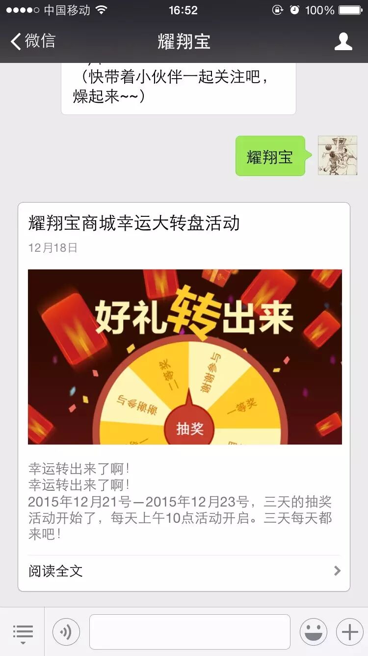 回复“耀翔宝”,进行幸运大转盘活动抽奖