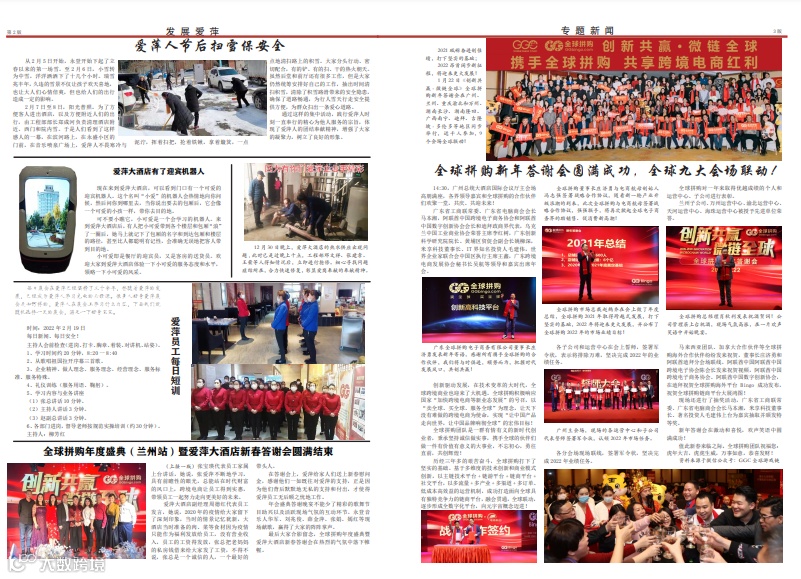 奋进不断,感恩常在。1月22日,全球拼购年度盛典暨爱萍大酒店新春答谢会隆重举办。