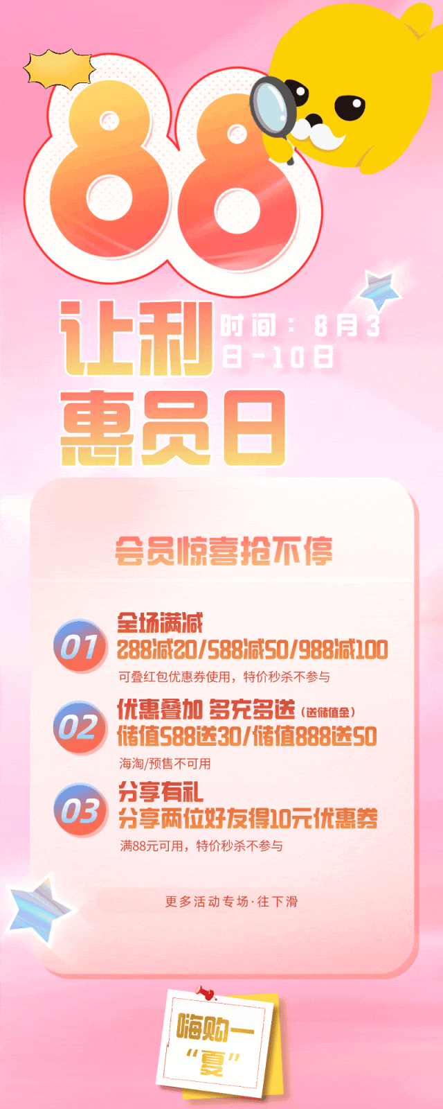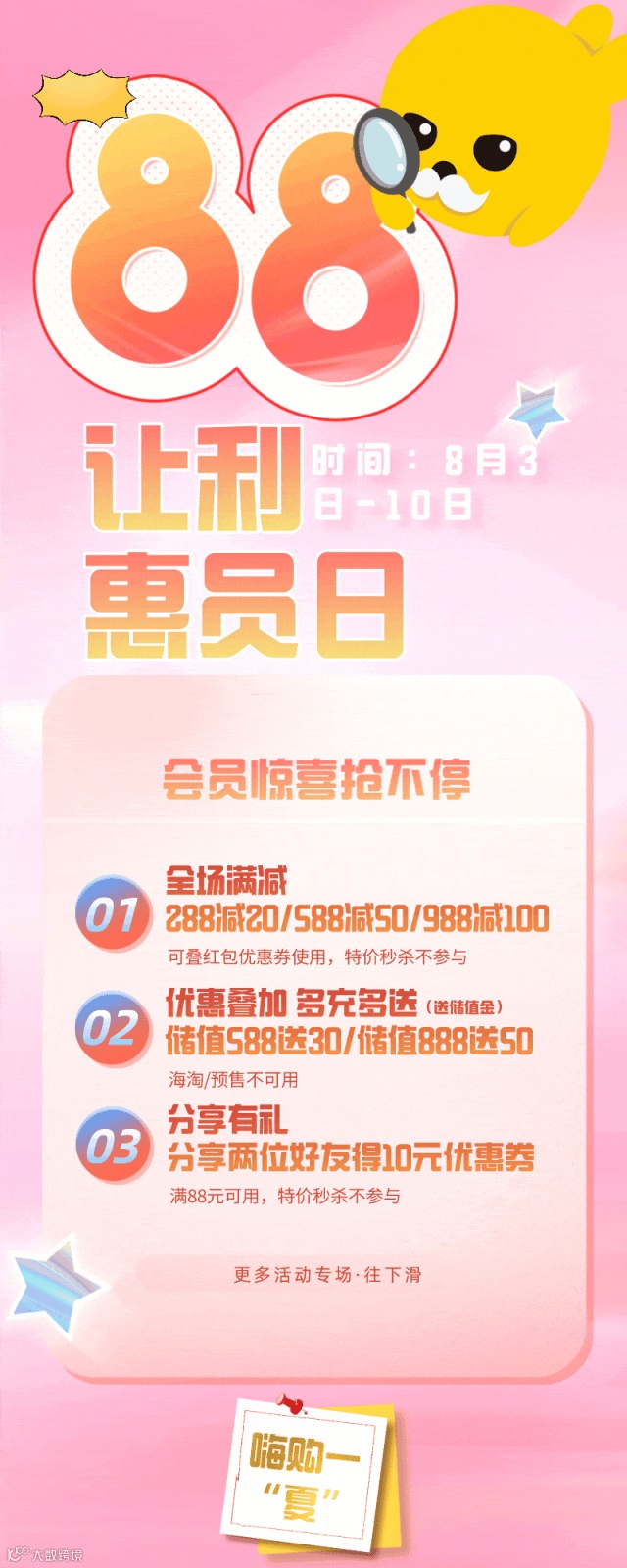 【内幕大公开】88会员日,全场满减叠加用券!会员储值多充多送,你赚了吗?