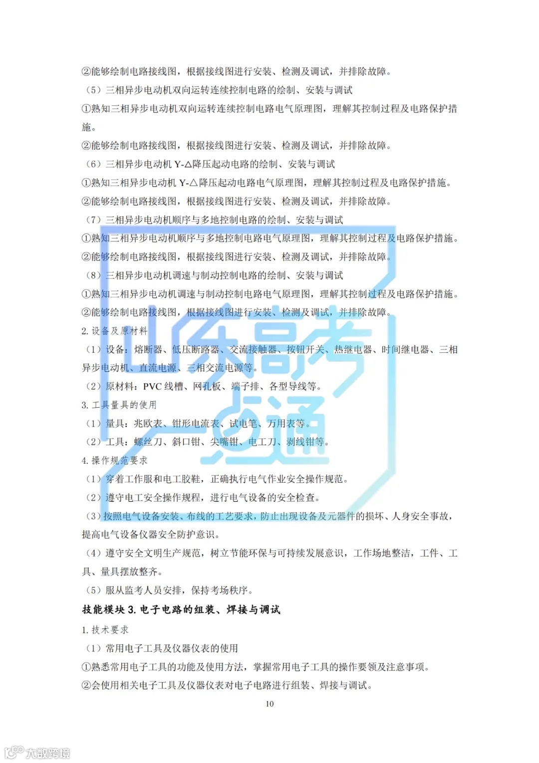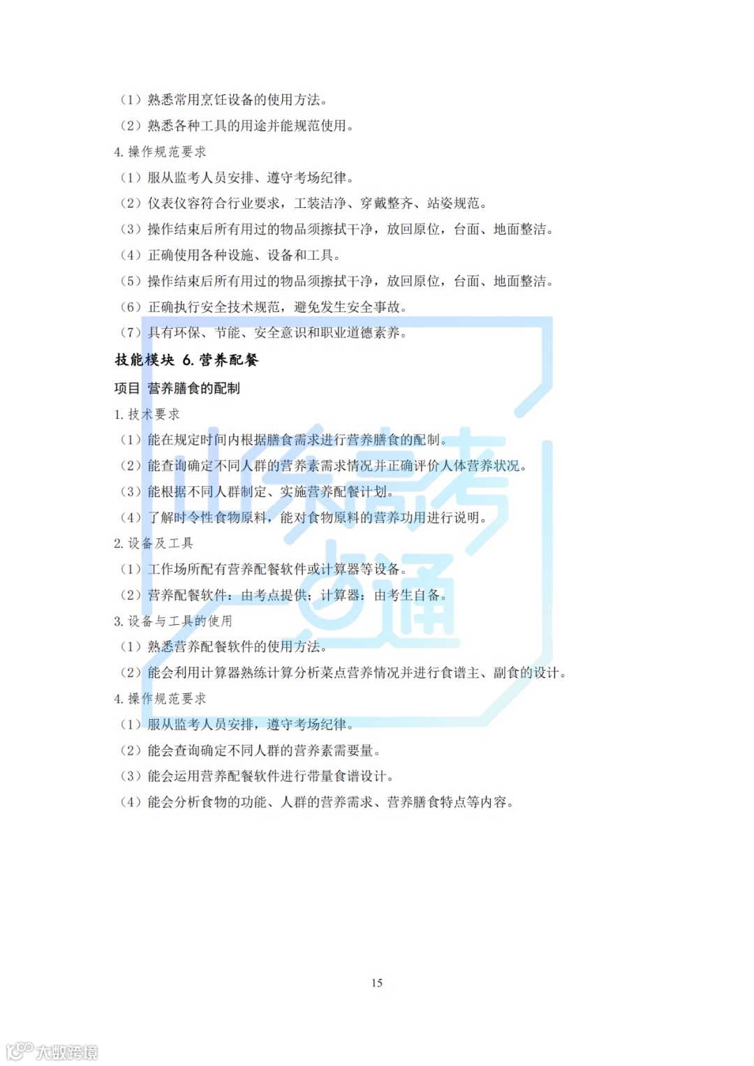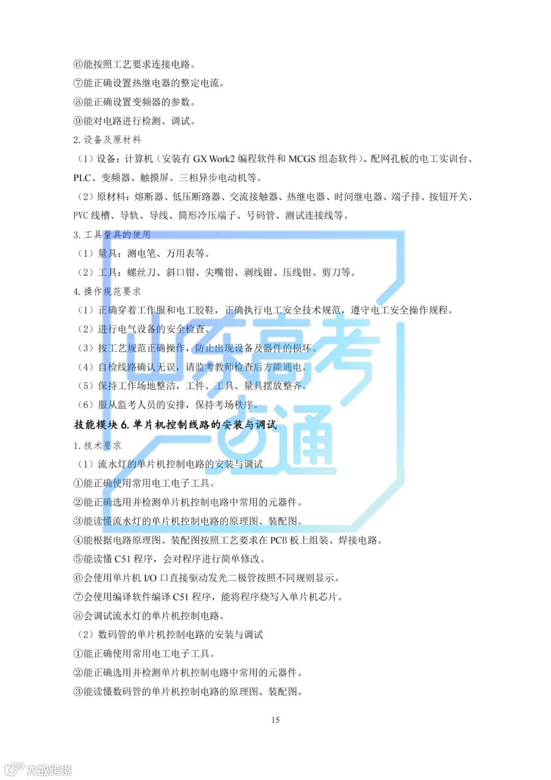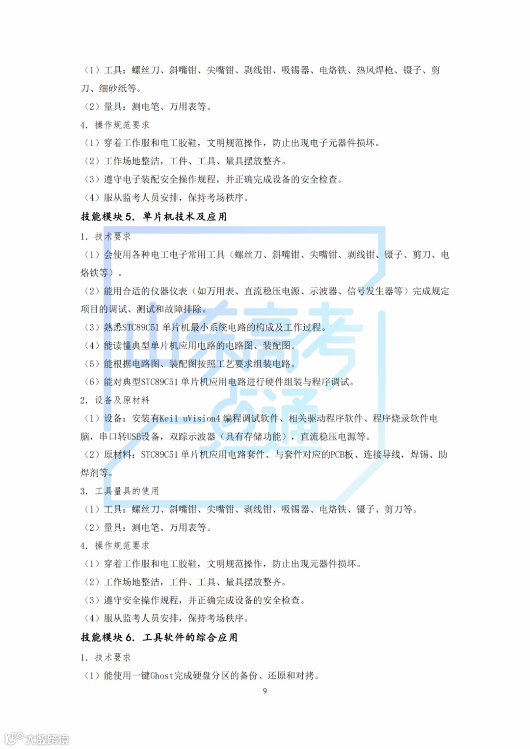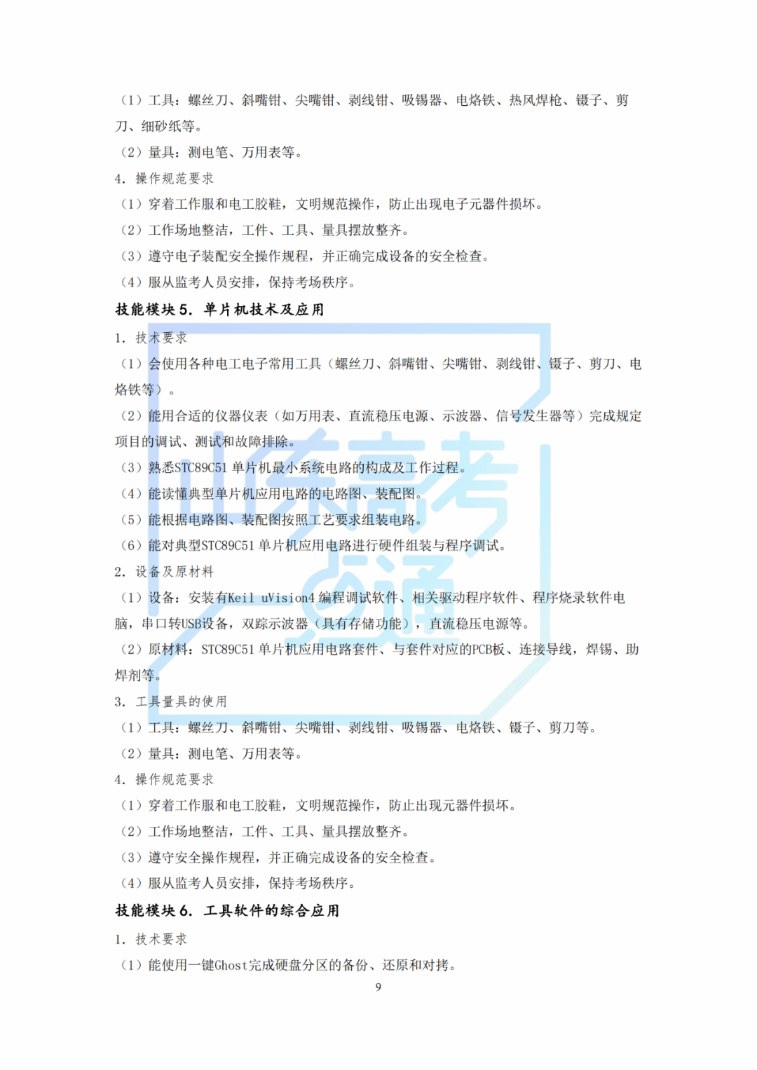 《考试标准》包括“知识”部分和“技能”部分,编制的指导思想和基本原则是有利于考查考生对基础知识、基本技能的掌握程度,综合运用知识、理论和方法解决实际问题的能力,有利于检验和培养考生应具备的职业素养,主要包括遵守和执行国家法律、法规以及行业的职业规范和道德规范,具有安全意识、质量意识、诚信意识、服务意识、合作意识、创新意识、劳动精神、工匠精神,培养和选拔德智体美劳全面发展的社会主义建设者和接班人。