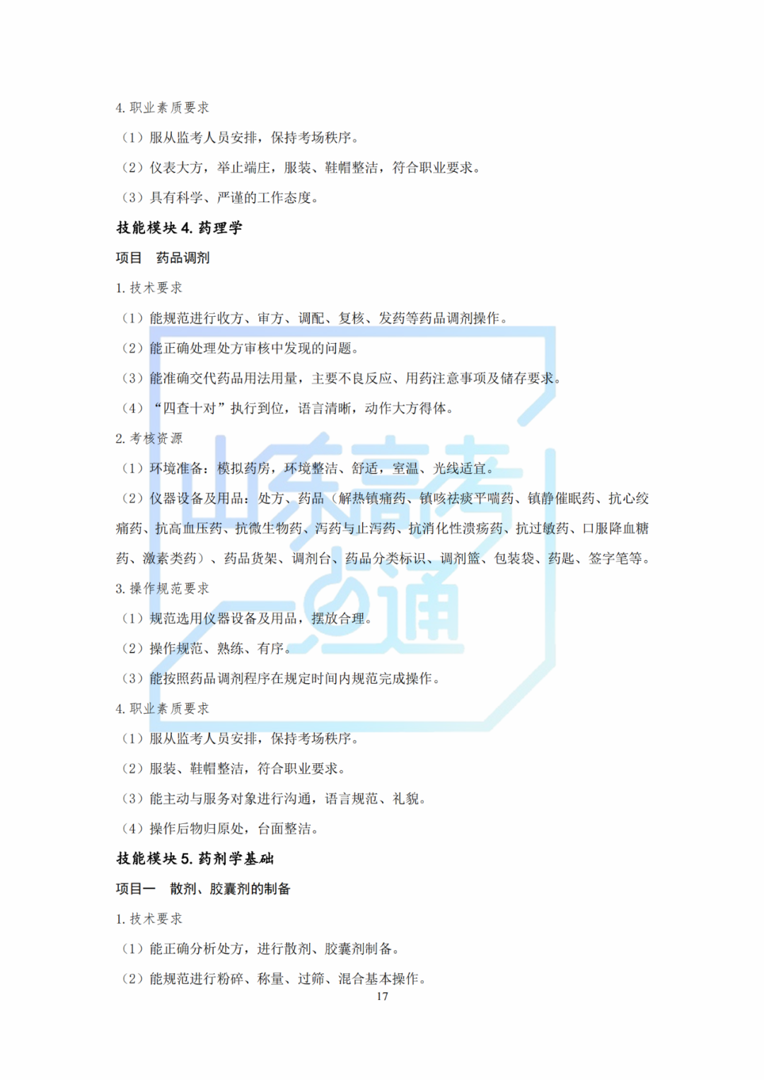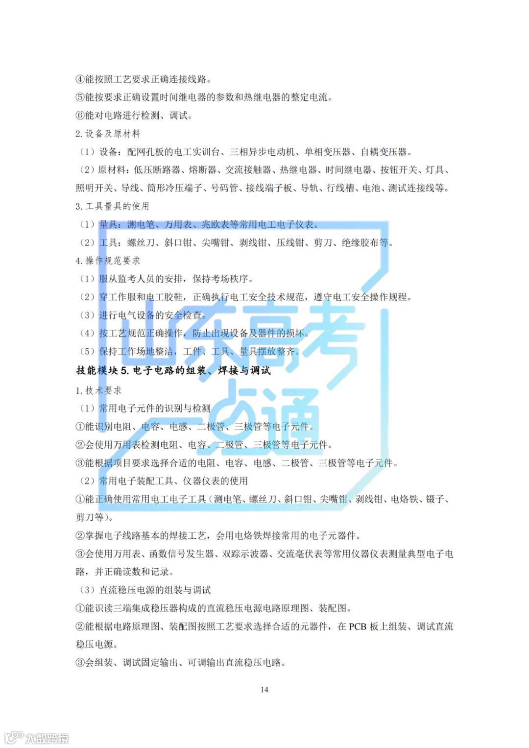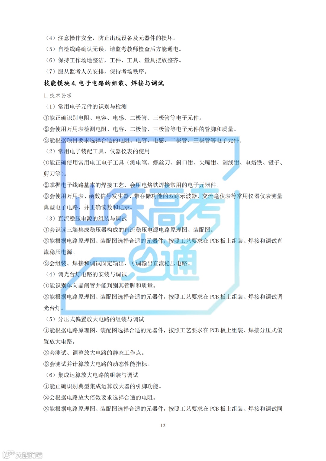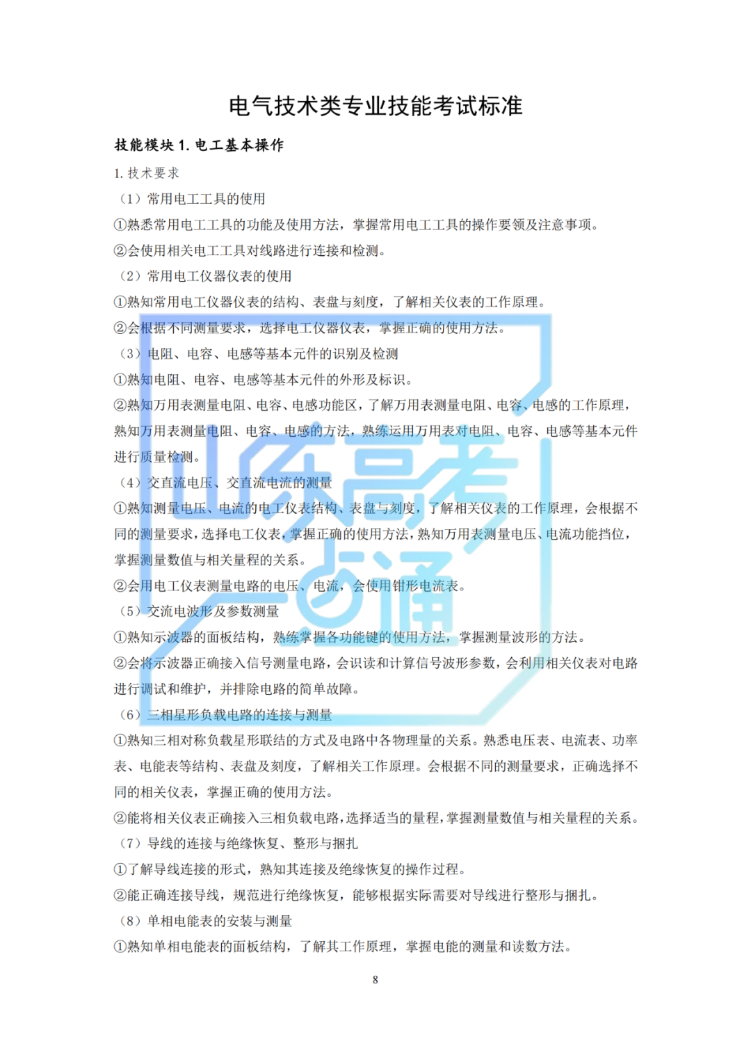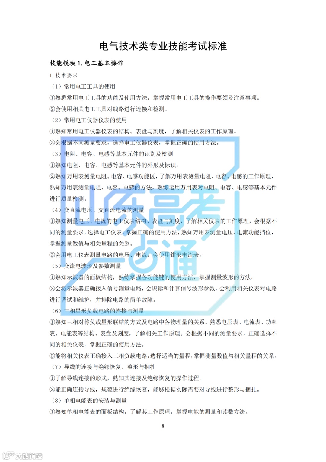 《考试标准》包括“知识”部分和“技能”部分,编制的指导思想和基本原则是有利于考查考生对基础知识、基本技能的掌握程度,综合运用知识、理论和方法解决实际问题的能力,有利于检验和培养考生应具备的职业素养,主要包括遵守和执行国家法律、法规以及行业的职业规范和道德规范,具有安全意识、质量意识、诚信意识、服务意识、合作意识、创新意识、劳动精神、工匠精神,培养和选拔德智体美劳全面发展的社会主义建设者和接班人。
