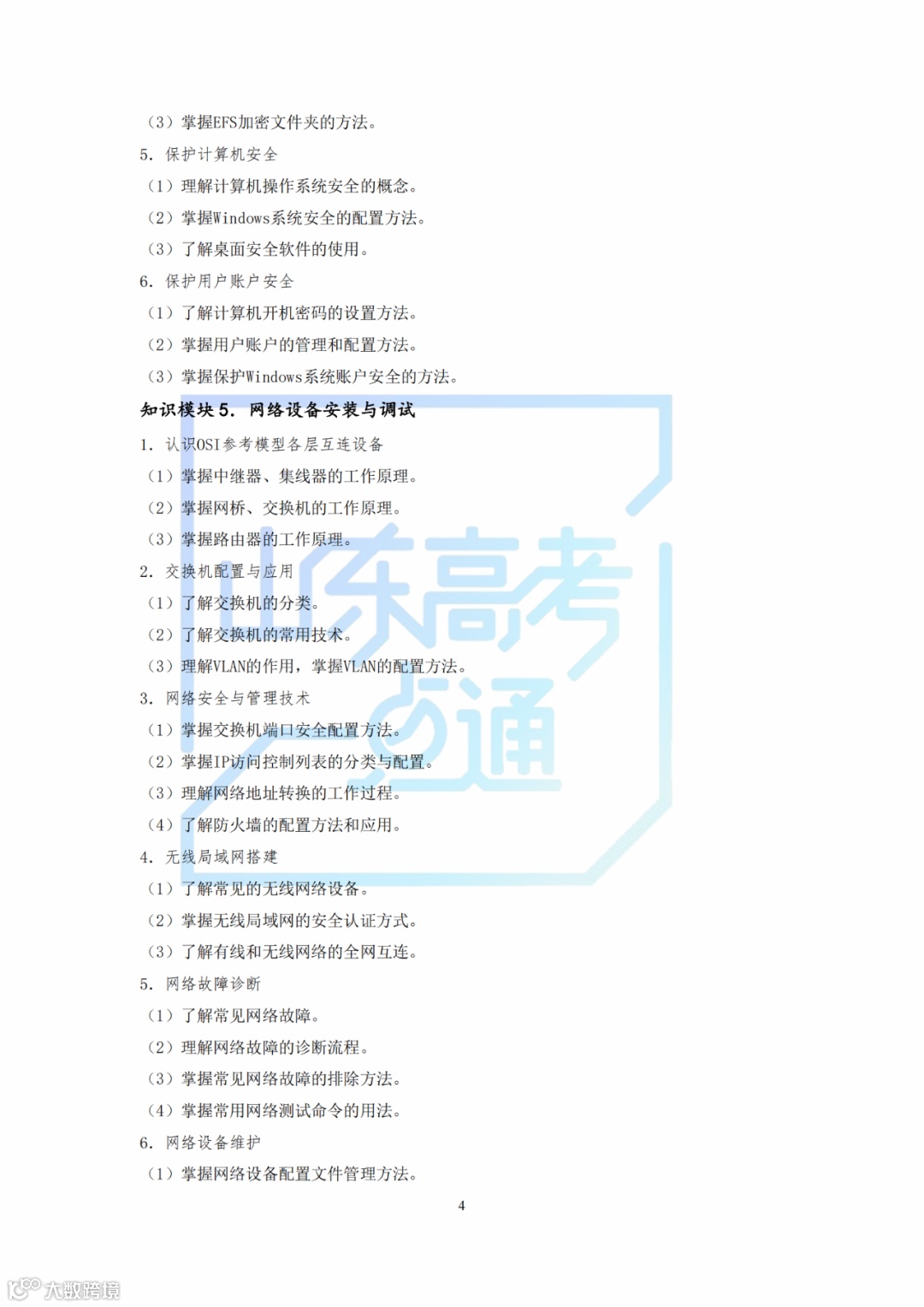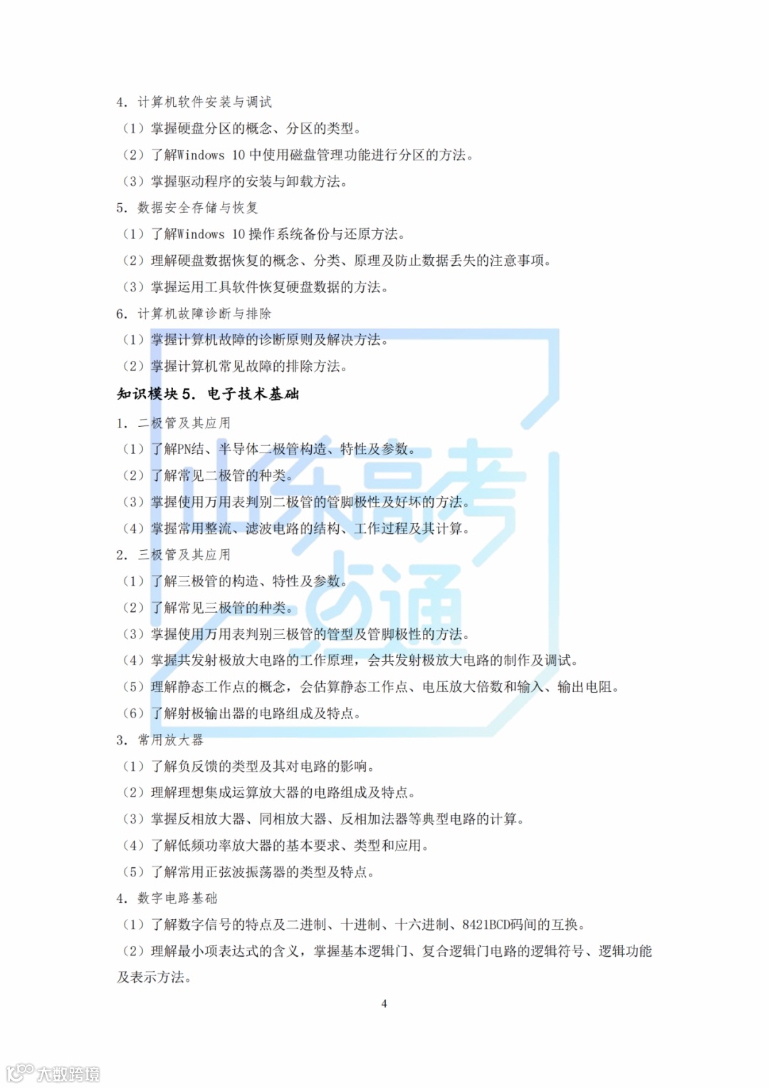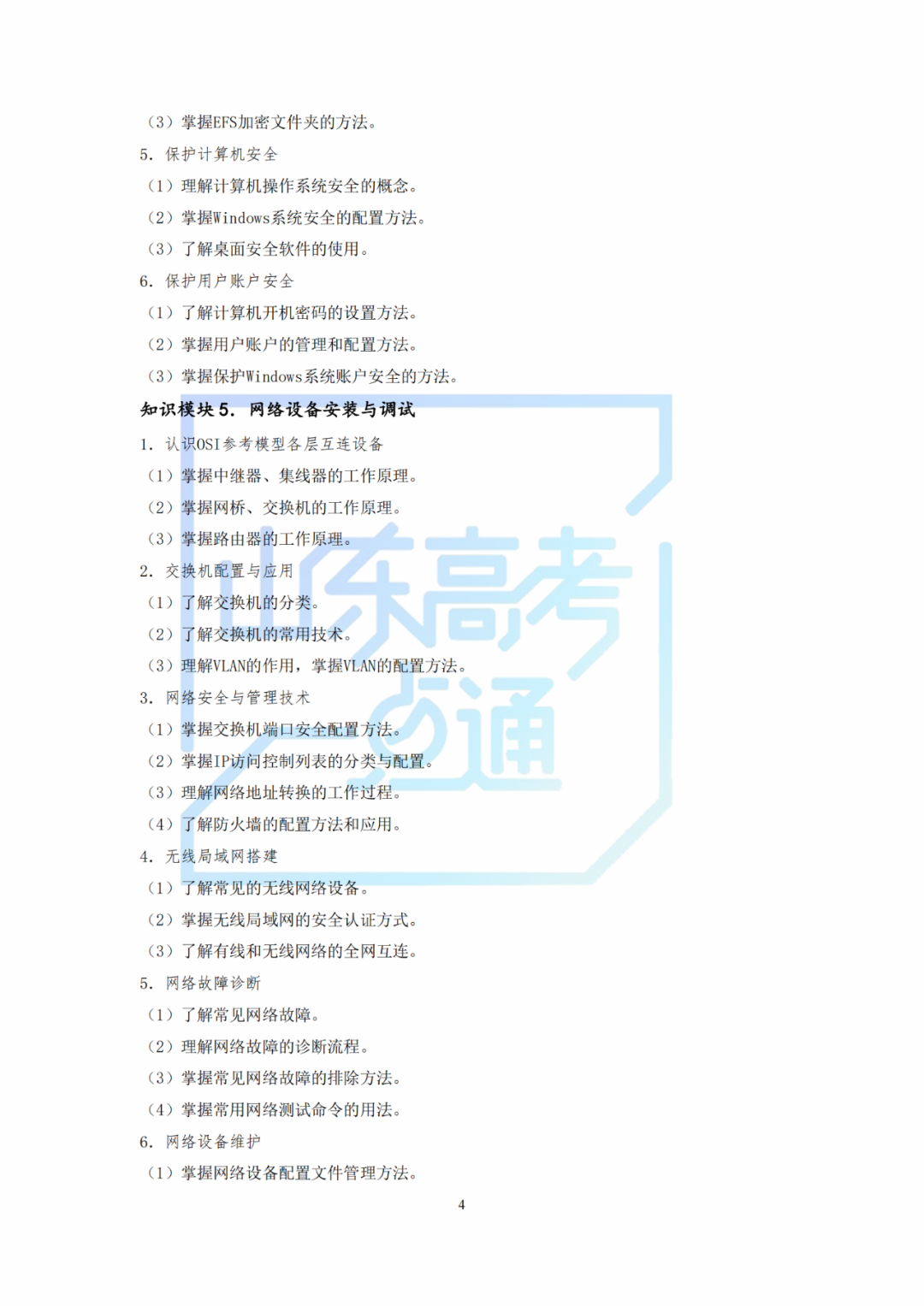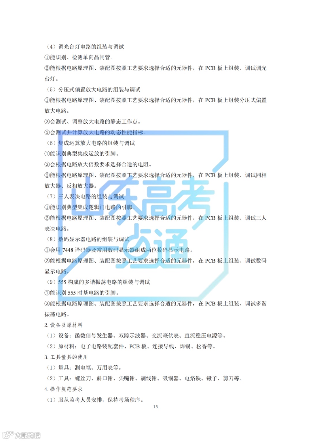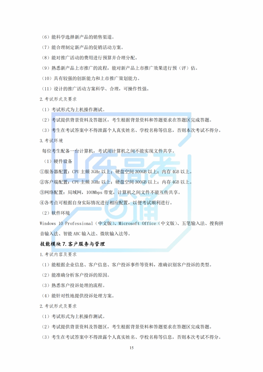 《考试标准》包括“知识”部分和“技能”部分,编制的指导思想和基本原则是有利于考查考生对基础知识、基本技能的掌握程度,综合运用知识、理论和方法解决实际问题的能力,有利于检验和培养考生应具备的职业素养,主要包括遵守和执行国家法律、法规以及行业的职业规范和道德规范,具有安全意识、质量意识、诚信意识、服务意识、合作意识、创新意识、劳动精神、工匠精神,培养和选拔德智体美劳全面发展的社会主义建设者和接班人。