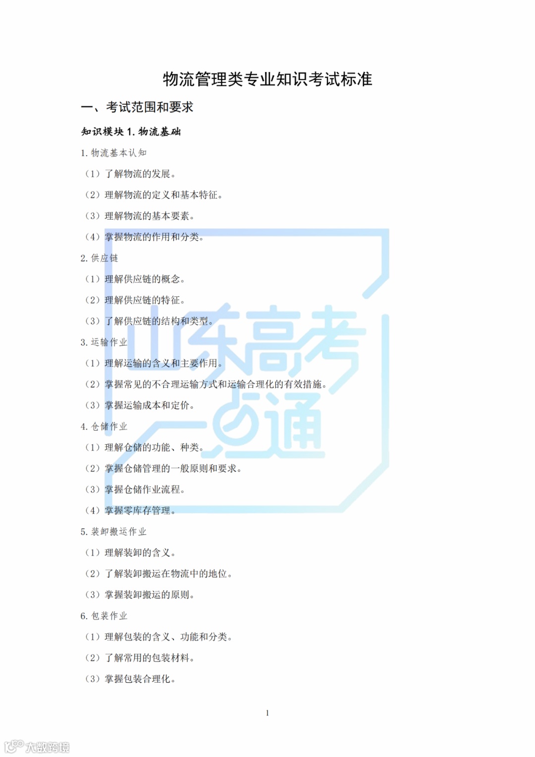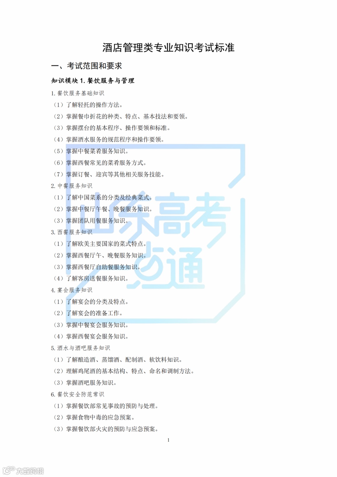 山东省春季高考统一考试招生专业类别考试标准(2025年版)