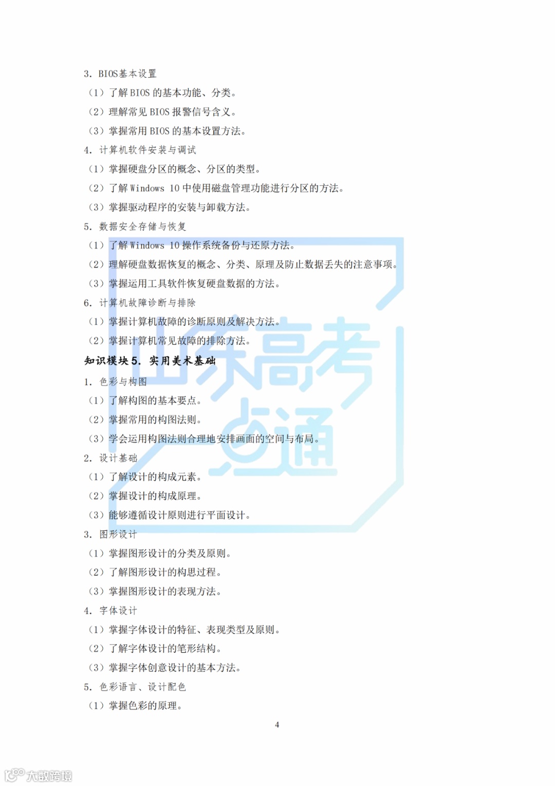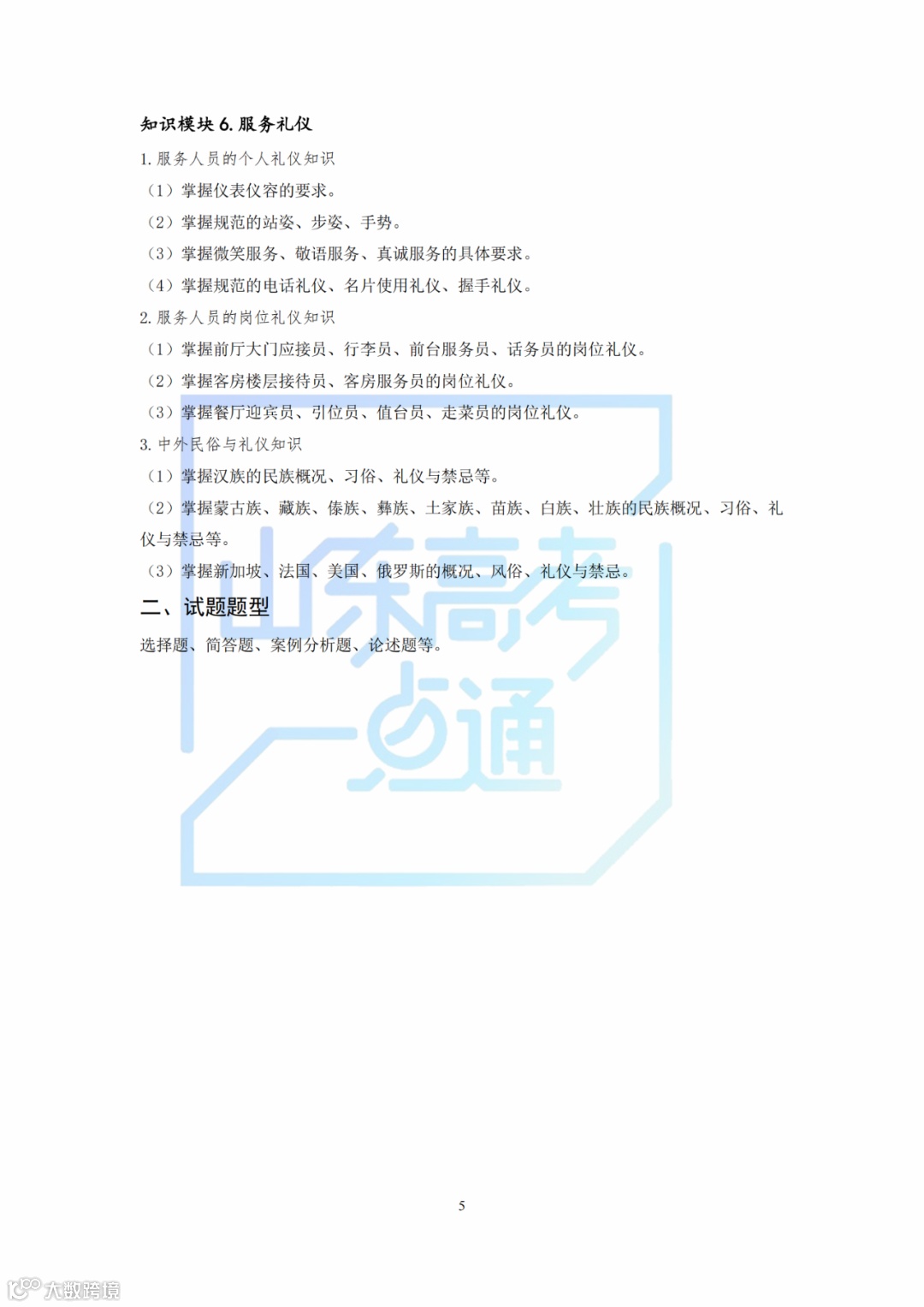 《考试标准》按照有利于科学选拔人才、促进学生健康发展、维护社会公平的原则,坚持“立德树人、服务选才、引导教学”的理念,力求体现职业教育发展的新要求,引导职业学校以就业为导向,强化学生技能训练,保证人才培养的规格和质量。《考试标准》以《山东省教育厅关于公布2025年春季高考统一考试招生专业类别考试模块的通知》(鲁教职函〔2024〕50号)为依据,以教育部和山东省教育厅公布的中等职业学校教学用书目录中与本类专业有关的教材为主要参考,结合山东省中等职业学校教学实际编写而成。《考试标准》既是我省春季高考统一考试招生命题的依据,也是教师教学、考生复习备考的重要参考。