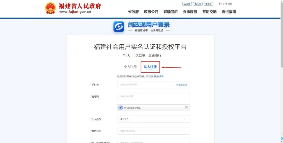 1.第一步:注册法人账户并登录。进入“福建省网上办事大厅”注册法人账户(注册页面链接:https://mztapp.fujian.gov.cn:8304/dataset/UnifiedController/goRegist.do?callerCode=Q9QP5Mznsc4rS9lk8t5sW4pj1byW8maZKBuAselxg),已注册过法人账户的社会组织可跳过该步骤,直接使用现有账户登录(建议使用“密码登录”方式)。