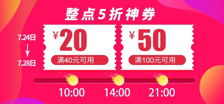 连续5天整点派发20元/50元券限时抢