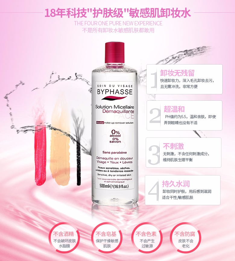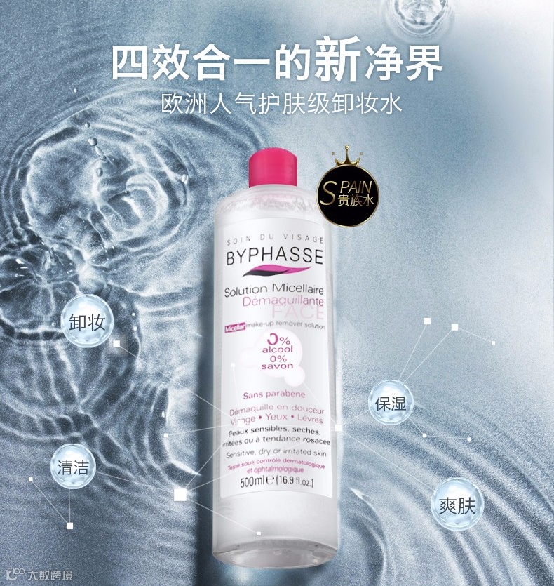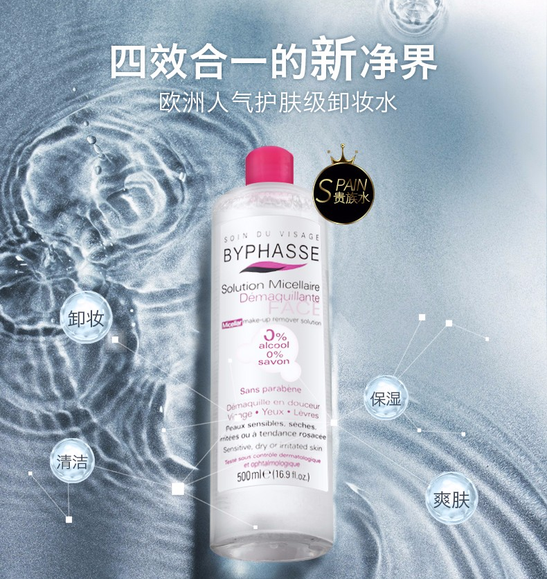 这里有来自西班牙的Byphasse卸妆水,号称平价版的贝德玛,500ml大容量便宜又大碗,深层卸妆的同时又非常温和,使用感很好。