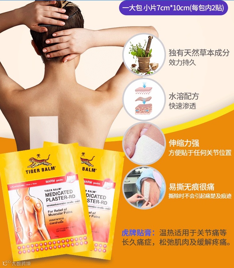 还有来自泰国的虎牌贴膏,能够缓解肌肉疼痛,肌肉疲劳,48小时持续发热,全天舒缓您的肌肉。