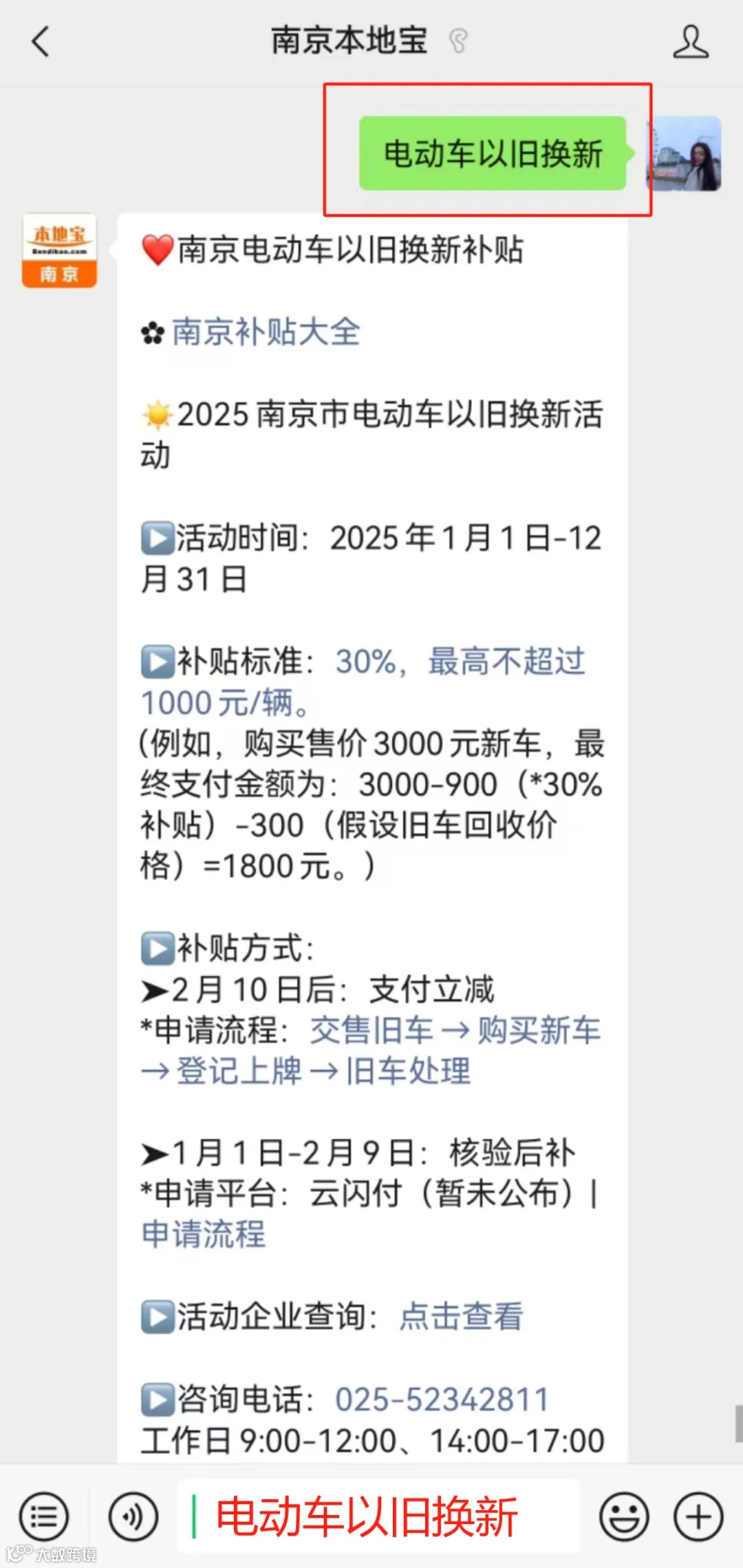 提醒:在南京本地宝后台对话框回复【电动车以旧换新】获取电动车以旧换新最新消息、办理攻略等。